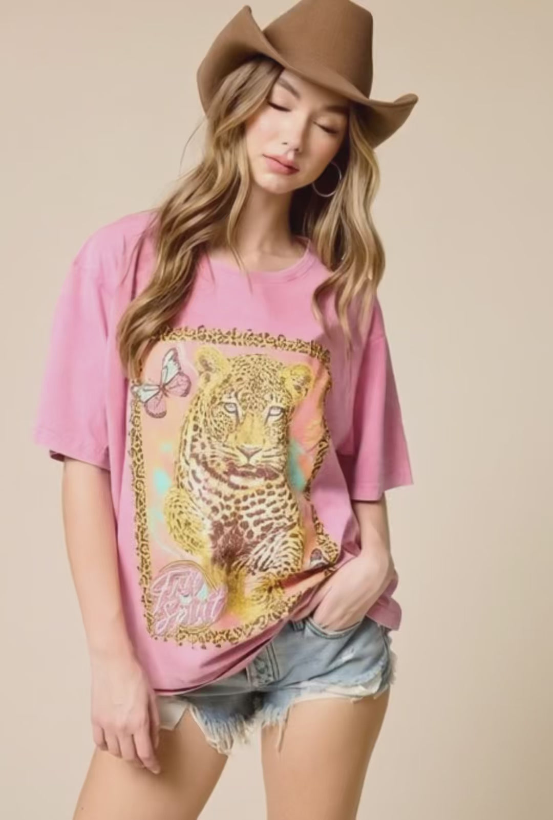 • Bold leopard + retro butterfly graphic